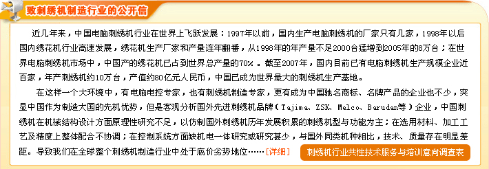 版權(quán)所有:刺繡機(jī)網(wǎng) 未經(jīng)許可嚴(yán)禁轉(zhuǎn)載 浙B2-20110025-43